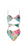 A striking cut-out one-piece defined by its knotted front details and sculpted silhouette. The double cut-outs create a refined hourglass effect, while adjustable straps and removable cups ensure a secure, personalized fit. Bold, feminine, and beautifully contoured from every angle.