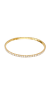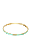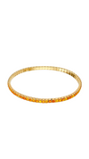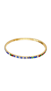 Sleek gold-tone flexible bangle featuring a vibrant array of rectangular-cut gemstones (including red, green, blue, and white) set in a continuous, polished metal band. Lightweight, statement accessory blending bold color with modern elegance, perfect for stacking or standalone wear.