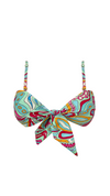 This strapless bandeau features a twist-front detail with a tie accent for a playful, feminine look. Wireless and light-support design keeps it comfortable while sunbathing, and the bold retro-inspired print makes it a standout mix-and-match swim essential.