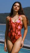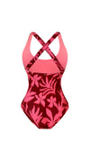 This bold tropical print one-piece features a flattering crisscross back and a modern scoop neckline. Supportive and comfortable, it offers full coverage with a sleek silhouette. Perfect for lounging by the pool, sunbathing on the beach, or resort wear.